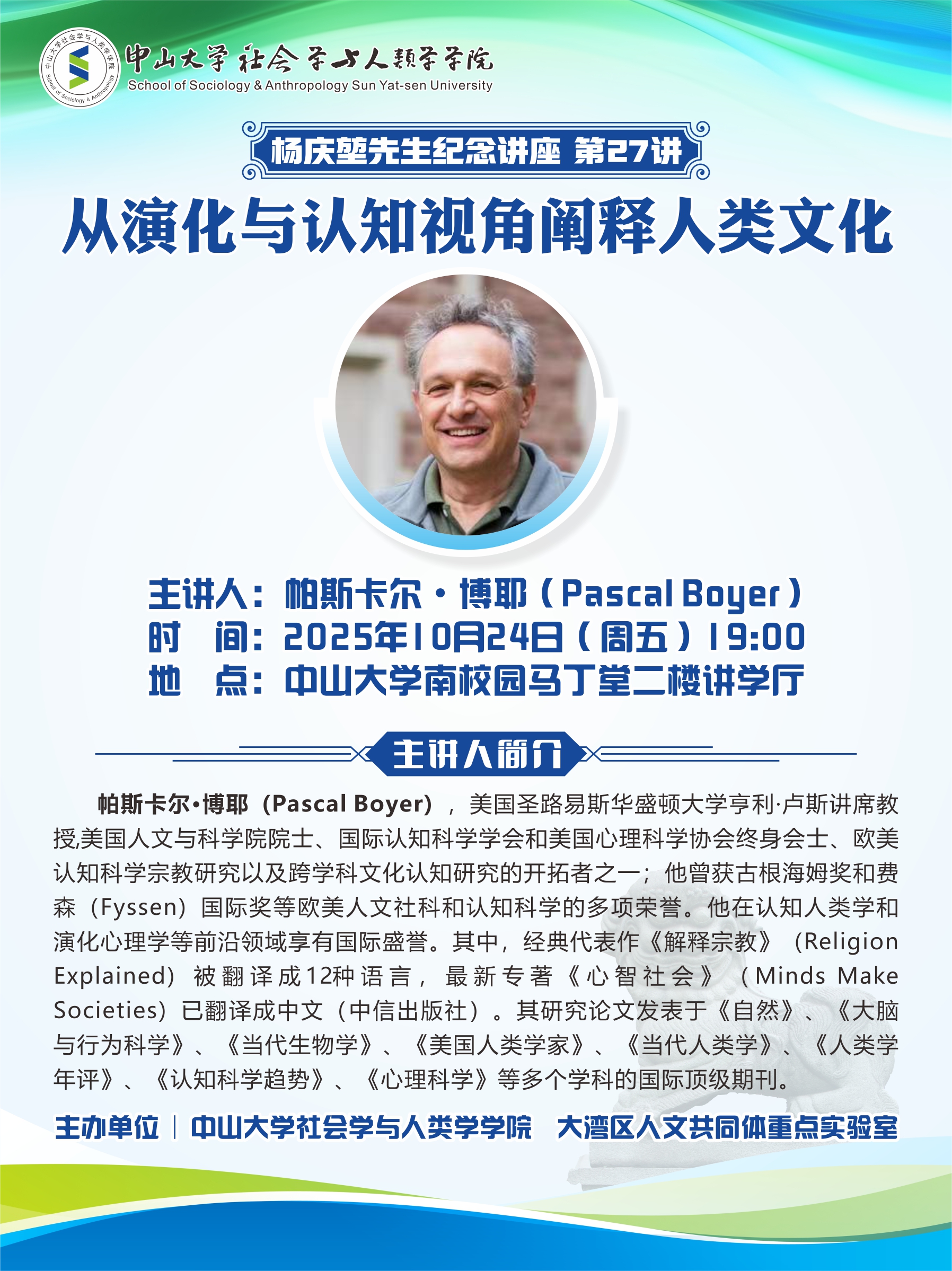 杨庆堃先生纪念讲座(第27讲):从演化与认知视角阐释人类文化